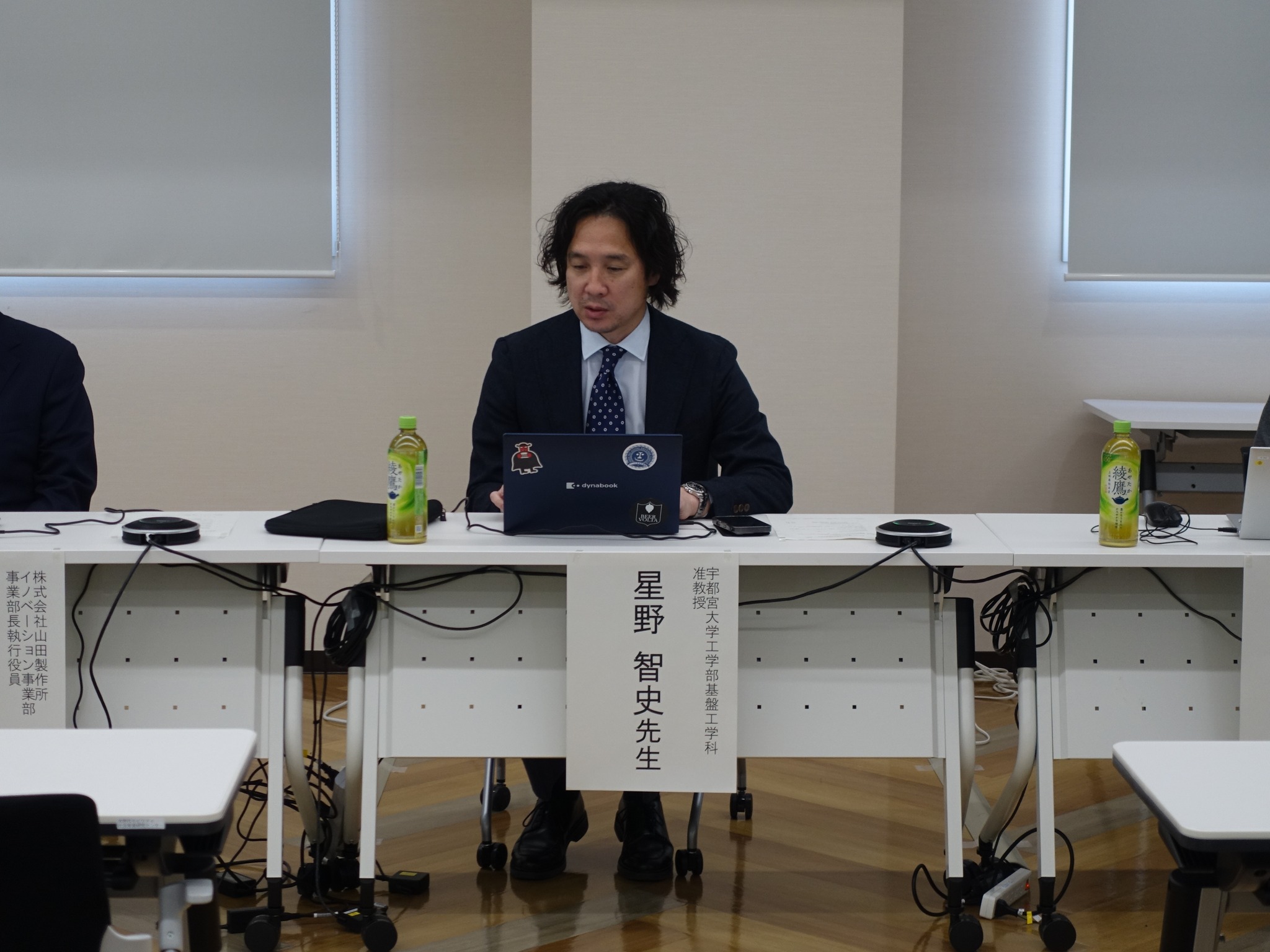 初日の懇親会では,余興でU字工事さんにお越しいただきました.また,二日目には福田富一栃木県知事にもお越しいただき,M1の岸君が,栃木県と共同で製作したパーソナルモビリティロボットに関する研究成果をご説明させていただきました.