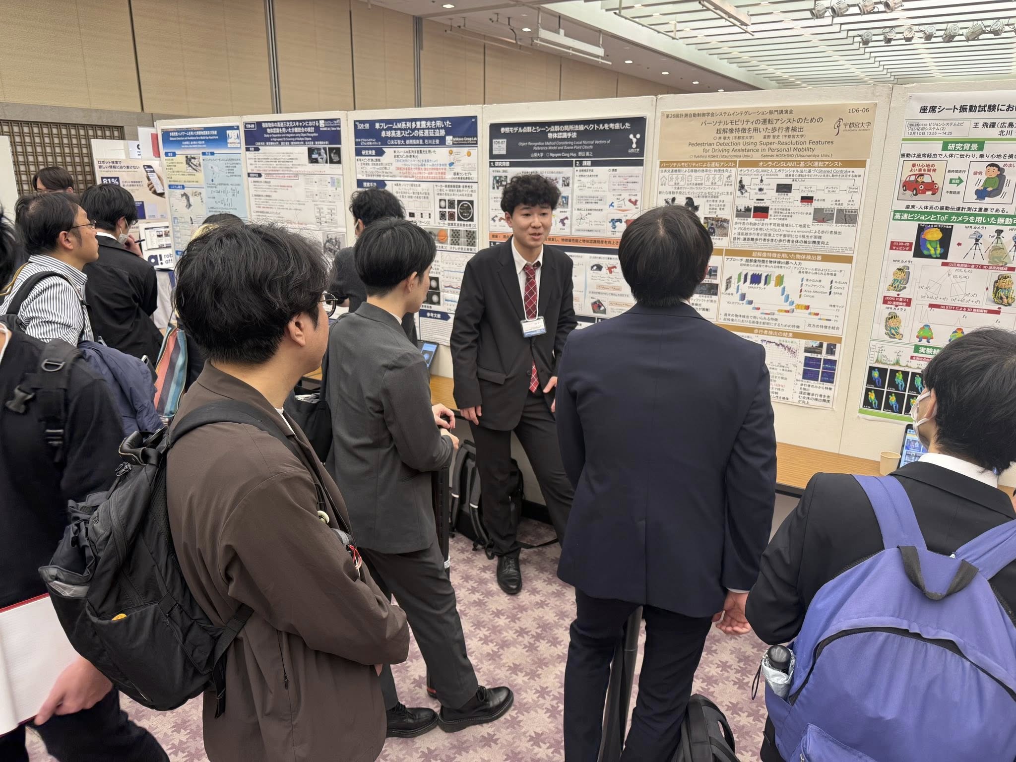 ボティクス・メカトロニクス講演会2024 が,初めて宇都宮 で開催されました.星野は実行副委員長を務めさせていただきました.当研究室からは,6名と星野がポスター発表を行いました.発表題目は,「航空機の着陸飛行における下降と引き起こしシナリオの時系列分類を通じた自動操縦器の模倣学習」(田中一成 , 星野智史, 1A1-A07),「測量地図とセンサ情報の統合を通じたパーソナルモビリティロボットの障害物回避を含む自律移動」(福迫靖顕 , 星野智史, 1A1-J09),「ロボットによる把持位置推定を通じた双腕での大型物体へのリーチング」(金子正弘 , 山田祐輔, 星野智史, 1P1-H10),「複数の障害物に対するオープンスペースに着目した移動ロボットによる回避動作計画」(柴田健志 , 菅田玲央, 渡邊友樹, 太田悠介, 星野智史, 2A1-N06),「パーソナルモビリティの運転アシストを目的とした路肩逸脱回避のためのShared Control」(小山佳祐 , 星野智史, 2A2-C07),「パーソナルモビリティの運転アシストのためのセンサフュージョンによるShared Control」(岸敬大 , 小山佳祐, 星野智史, 2P1-O03),「移動ロボットによる複数の動的障害物回避のための深度差分画像を入力とした動作計画法」(星野智史 , 久保田有羽, 2P2-N05)です.